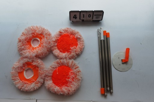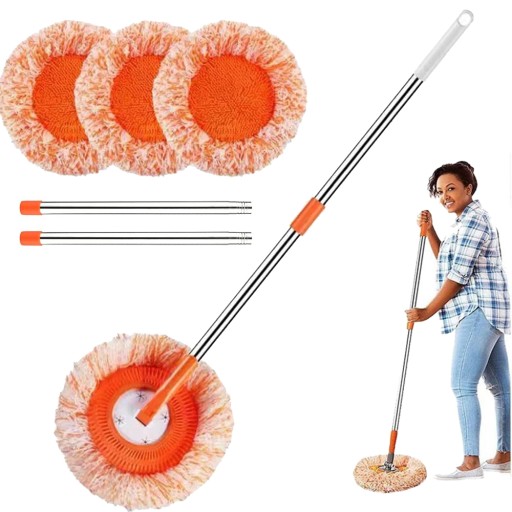 - Ten okrągły mop wykonany jest z wysokiej jakości mikrofibry, włókniny koralowej, tworzywa sztucznego i stali nierdzewnej.
