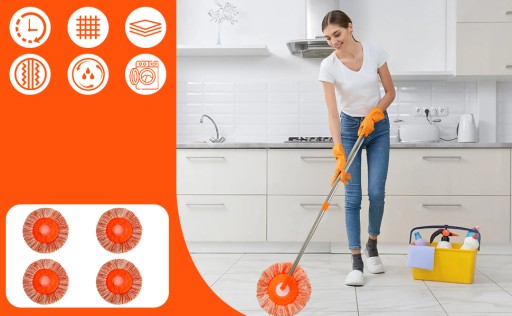 - Końcówka mopa z mikrofibry, miękka i chłonna, skutecznie pochłania brud, kurz i włosy. Można go również stosować z detergentem w celu łatwego czyszczenia.