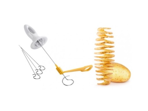 - Komplet zawiera 4 szpikulce wykonane ze stali nierdzewnej służące do smażenia i pieczenia ziemniaczanych spirali.
