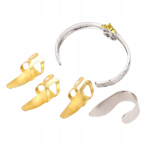 Funkcja:1. NARZĘDZIA W ZESTAWIE: Ten zestaw zawiera widelec do kostek kciukowych, 3 kostki i bransoletkę do gry na różnych instrumentach smyczkowych, które są wygodne i praktyczne.