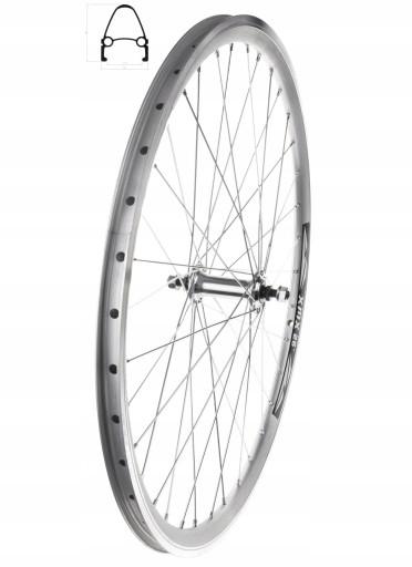 Koło przód 28" obręcz stożek srebrna, piasta aluminiowa, łożyska maszynowe, na nakrętki RJX