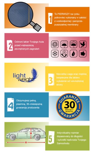 - zakrywa cały pojazd lekko zachodząc pod spód;