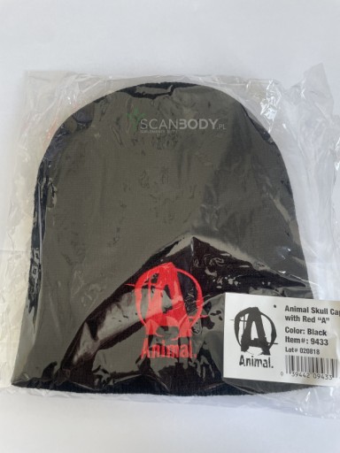 Czarna czapka zimowa z czerwonym logo Animal z przodu.