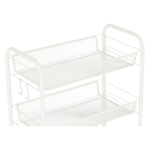 Pomocnik na kółkach to praktyczne i funkcjonalne rozwiązanie, wykonane w całości z wysokiej jakości stali i drewna. Konstrukcja ta jest wytrzymała i solidna, co zapewnia długie użytkowanie. Regał umieszczony na obrotowych kółkach (360°) umożliwia łatwe przemieszczanie go po pomieszczeniu.
