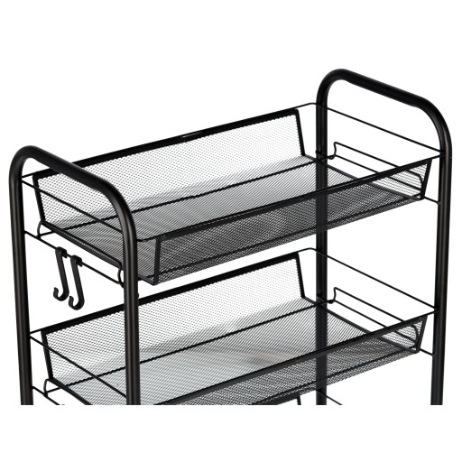 Pomocnik na kółkach to praktyczne i funkcjonalne rozwiązanie, wykonane w całości z wysokiej jakości stali i drewna. Konstrukcja ta jest wytrzymała i solidna, co zapewnia długie użytkowanie. Regał umieszczony na obrotowych kółkach (360°) umożliwia łatwe przemieszczanie go po pomieszczeniu.