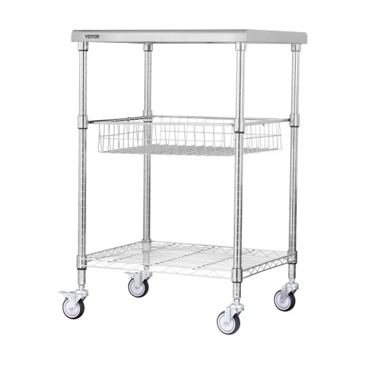 Ten 3-poziomowy wózek może pomieścić przedmioty o wadze do 470 funtów (213,2 kg). Dzięki płynnie regulowanym półkom można łatwo przechowywać nawet duże urządzenia gospodarstwa domowego. Na spodzie znajdują się kółka z cichymi hamulcami. Możesz przetransportować różne przedmioty w wybrane miejsce, a następnie je zamknąć. Idealnie nadaje się do stosowania w kuchniach, restauracjach, hotelach i na zewnątrz.