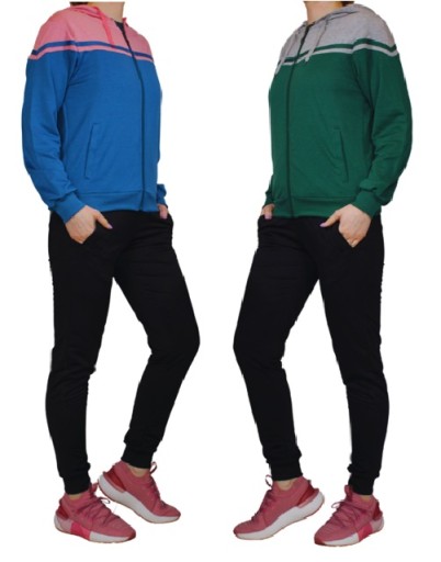КОМПЛЕКТ ЖЕНСКОГО СПОРТИВНОГО КОСТЮМА С КАПЮШОНОМ СМЕШАННЫЕ ЦВЕТА РАЗМЕР M