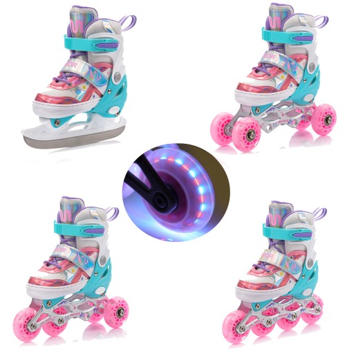 - Układ 4w1: łyżworolki, łyżwy, wrotki, rolko-wrotki