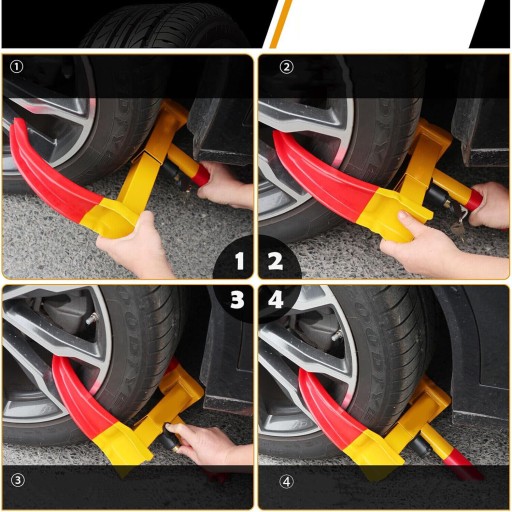 🚗 Idealne odstraszanie wizualne: Jasnożółte i czerwone blokady zaciskowe kół zapewniają najlepszą widoczność w dzień i w nocy. Blokada koła znacznie zmniejsza ryzyko złapania przez złodzieja i skutecznie chroni Twój pojazd.