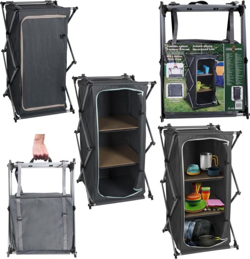 SZAFA TURYSTYCZNA SKŁADANA Z 3 PÓŁKAMI 49x53x95CM CAMP ACTIVE zapewni organizację i przechowywanie niezbędnych rzeczy, takich jak naczynia, artykuły higieniczne czy jedzenie. Jej konstrukcja pozwoli na szybkie rozłożenie i złożenie, co jest bardzo wygodne podczas podróży!
