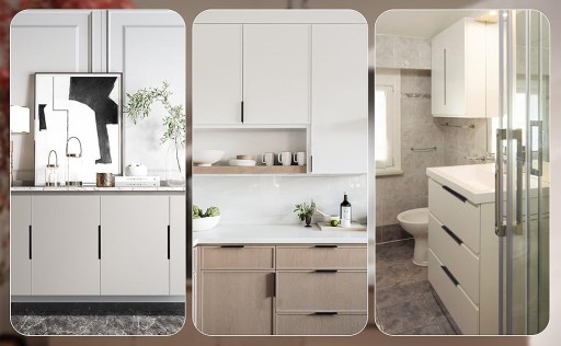 - ☑️Ukryte klamki do drzwi mają konstrukcję do montażu z tyłu i są ukryte w drzwiach szafki, są piękne i praktyczne.