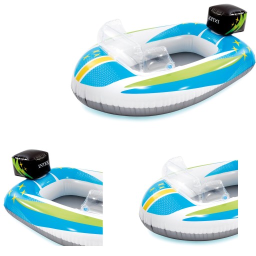 - Ponton dmuchany INTEX w kształcie kolorowej motorówki idealnie sprawdzi się w upalne dni wśród najmłodszych fanów kąpieli.
