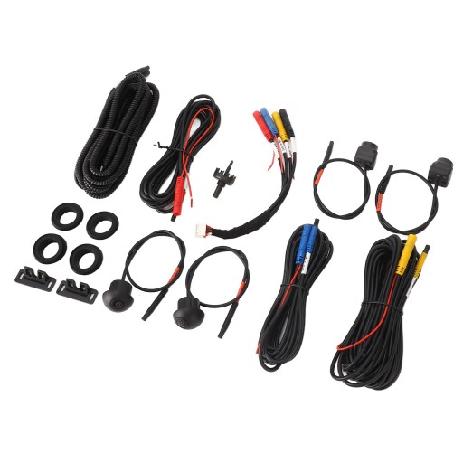 4 x kamera 4 x gumowa podkładka 4 x przedłużacz 1 x specjalna linka do maszyny samochodowej 1 x przyrząd do otwierania otworów 2 x podstawa montażowa