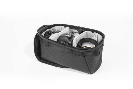 Wkład CAMERA CUBE LARGE może być używany jako wypełnienie plecaka lub samodzielna torba. Specjalne uchwyty umożliwiają podpięcie opcjonalnego paska Peak Design, co sprawdza się w sytuacji, gdy wygodniejsza jest torba niż plecak. Rozwiązanie takie jest też wygodne w samolocie, gdzie plecak można nadać jako bagaż, a wypełnienie wraz ze sprzętem zabrać na pokład samolotu.