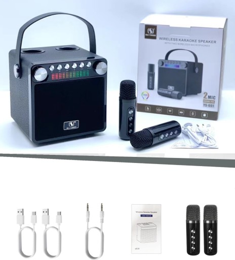 КАРАОКЕ-ДИНАМИК С 2 БЕСПРОВОДНЫМИ МИКРОФОНАМИ BLUETOOTH С ЦВЕТНЫМ СВЕТОДИОДОМ