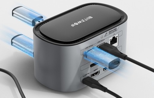 Stacja dokująca 14w1 BW-TH12 to nieocenione narzędzie, które ułatwi Ci codzienną pracę. Wyposażona w aż 14 portów - umożliwia łączenie wielu urządzeń. Pozwala przesyłać pliki z prędkością nawet 5 GB/s, a także powielać lub rozszerzać ekran na nawet 3 dodatkowe wyświetlacze. Interfejs RJ45 pomoże Ci uzyskać szybkie i stabilne połączenie z siecią, a możliwość szybkiego ładowania sprawi, że zaoszczędzisz czas i energię. Stacja ma też specjalne miejsce przeznaczone dla dysków SATA SSD.