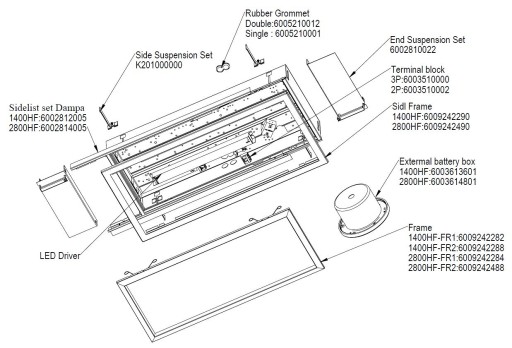 - Obudowa stalowa i warianty szyn bocznych lub ram do adaptacji do większości sufitów panelowych.