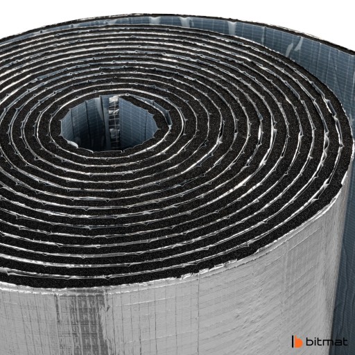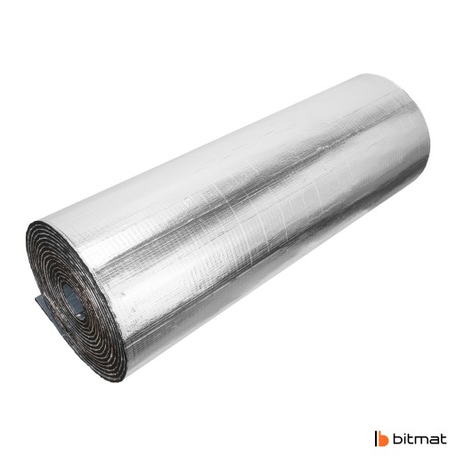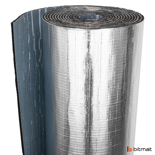 Samoprzylepna pianka kauczukowa Bitmat ekran zagrzejnikowy 6 mm jest wykonany z wysokiej jakości spienionej gumy połączonej z warstwą grubego, czystego aluminium (nie metalizowanej folii PET), co zapewnia trwałość oraz skuteczność w odbijaniu ciepła do wnętrza pomieszczenia. Stosując piankę za grzejnikiem, ciepło nie przenika w ścianę, a wraca do wnętrza mieszkania lub domu, co przekłada się na skuteczniejsze wykorzystanie energii z kaloryfera oraz pozwala zredukować koszty ogrzewania.