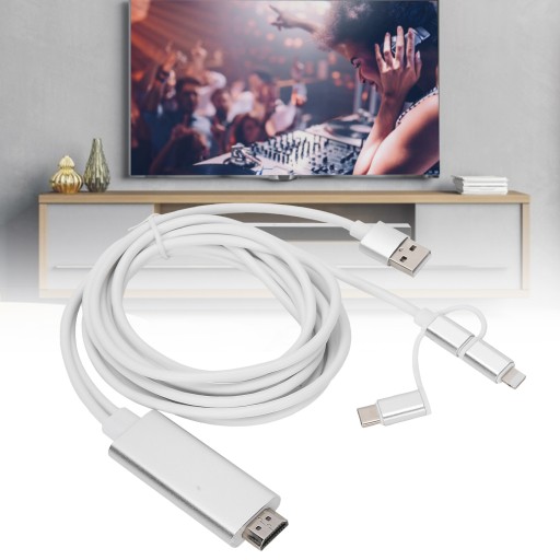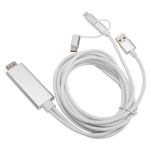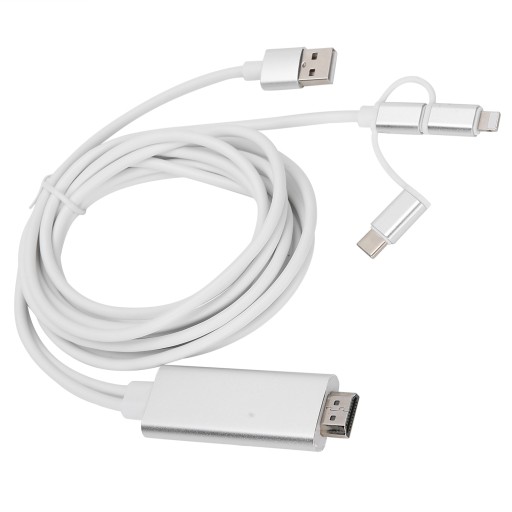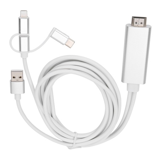 Stan: 100% nowy Typ artykułu: Kabel adaptera HDMI 3 w 1 Materiał: ABS Kolor: Srebrny Waga: Około. 97,0 g Typ złącza: Micro USB, HDMI Typy kabli: HDMI, Typ?C, Micro USB Sprzęt zgodny: Projektor, telewizor, monitor