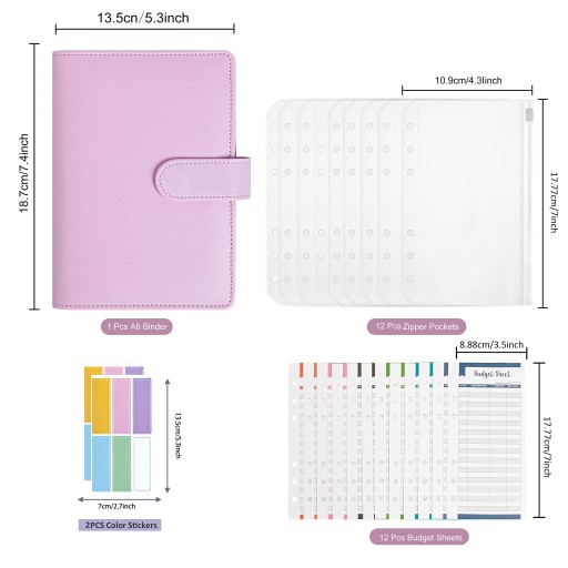 - 【Zakres dostawy】 Zestaw segregatorów z budżetem zawiera skórzany segregator A6, 12 przezroczystych kieszeni z PVC, 12 kolorowych kart budżetowych, 3 kolory karteczek samoprzylepnych, 20 naklejek