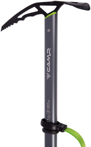 Czekan CAMP Neve jest prosty i wytrzymały, co daje pewne wsparcie w walce ze zmrożonym śniegiem i stromym podejściem. Krótka, ruchoma pętla nadgarstkowa przesuwa się wraz ze zmianą pozycji trzymania, minimalizując ryzyko zahaczenia nogą. Zaokrąglona łopatka ułatwia trzymanie.