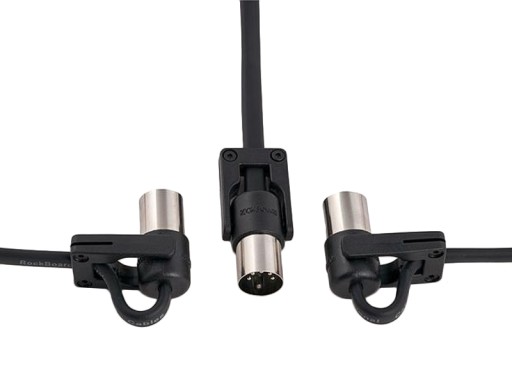 Kable te, oparte na odchudzonej konstrukcji Flat MIDI Cable, oferują płaskie i kompaktowe wtyczki o wielokierunkowej konstrukcji. Można je ustawić tak, aby były proste lub ustawione pod kątem w lewo i w prawo oraz zablokowane za pomocą dwóch śrub. Wszystko to z kablami RockBoard® FlaX Plug MIDI.