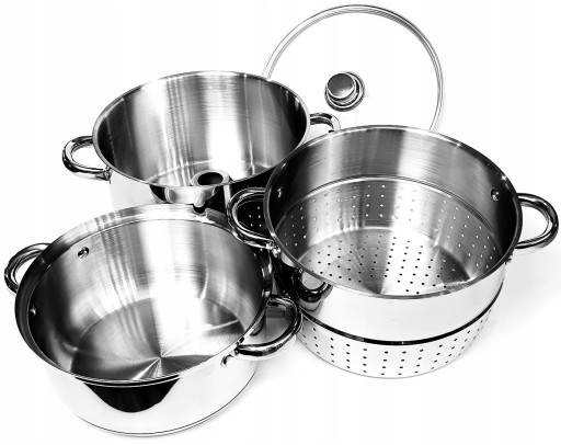 Zestaw składa się z trzech nakładanych na siebie naczyń: