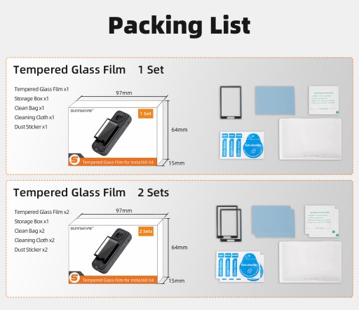 【Lista pakowania】Ochraniacz ekranu Insta 360 X4 * 2, zestaw instalacyjny na bazie alkoholu * 2.