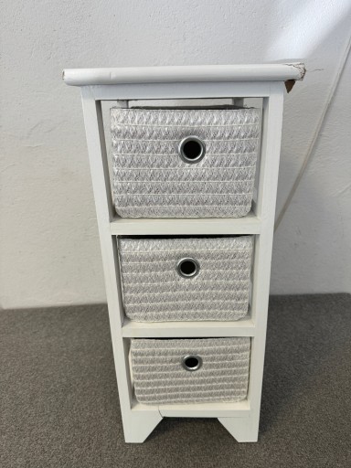 - Właściwości – mała komoda ma idealny rozmiar do Twojej łazienki lub pokoju. Komoda ma 56 cm wysokości i ma długość (głębokość) 30 cm i szerokość (od boku do boku) 25 cm. Waga wynosi 2,2 kg i jest wykonana z metalu i drewna. Kolor: biały. Z 3 wkładanymi półkami
