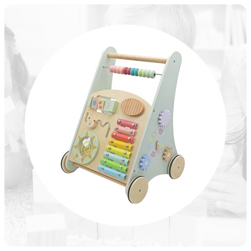 - Chodzik – pchacz z rączką, czyli podstawowa nauka chodzenia i utrzymywania prawidłowej postawy