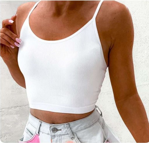 Śliczny stylowy dopasowany elastyczny top na ramiączkach. Top posiada regulowane ramiączka. Wykonany z elastycznego materiału ładnie dopasowuje się do ciała