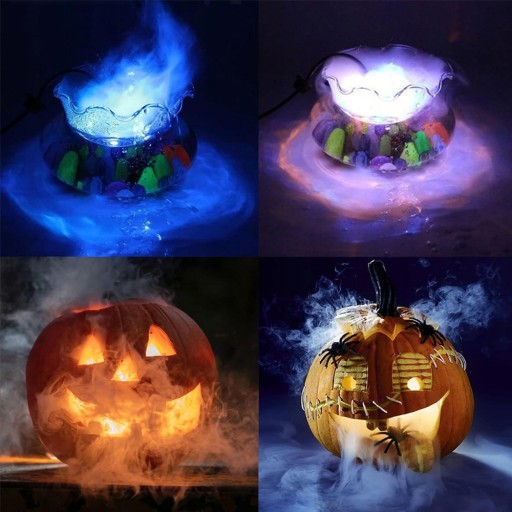 Terrarium z ultradźwiękowym zamgławiaczem ma kolorowe oświetlenie z 12 diodami LED, może być używane jako dekoracja, tworzy magiczną atmosferę, szczególnie idealną na Halloween i inne święta.
