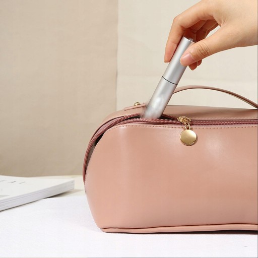Przenośna Kosmetyczka Podróżna PU Skórzana Torebka Wodoodporne Dziewczęta Różowa