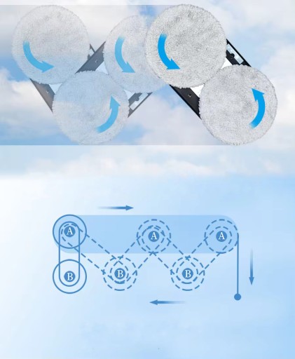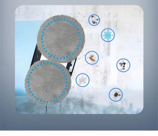 Pierścienie czyszczące z nakładkami z mikrofibry z mikro-komputerowym systemem napędowym i ultra mocnym systemem próżniowej adsorpcji wyczyszczą każde gładkie i przeźroczyste szkło bez jego uszkodzenia!