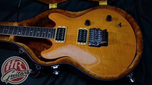 Piękna YAMAHA IMAGE DELUXE z 1989 roku, produkcja tajwańska. Model używany swego czasu m.in. przez Alana Murphy z Level 42, Andy Powella z Wishbone Ash, Micka Boxa z Uriah Heep, czy Scotta Gorhama z Thin Lizzy. Gitara jest w ładnym stanie, ma normalne ślady używania. Osprzęt i pickupy są oryginalne. Mostek ruchomy o nazwie Rockin Magic Pro, zamontowany jest trem stop. Humbuckery to Live Alnico 5s, oba rozłączane są na single. Korpus to mahoń z piękną, klonową, wzorzystą nakładką, gryf mahoń z hebanową podstrunnicą. Menzura to 25 cali. Progi są nowe. W komplecie jest oryginalny futerał i wajcha. Serdecznie polecam ten świetny instrument i zapraszam na testy.