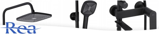 ZESTAW NATRYSKOWY PRYSZNICOWY Z DESZCZOWNICĄ CZARNY ŚCIENNY REA STORM BLACK