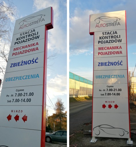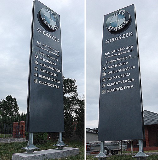 Pylon/totem reklamy typu „DIBOND” rozmiar 207x100, LED.