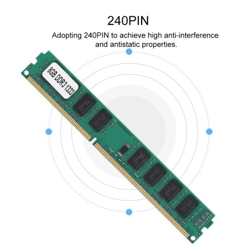 1. Częstotliwość 1333 MHz - Częstotliwość 1333 MHz sprawia, że transmisja danych jest superszybka. Zapewnia wspaniałe wrażenia z gry. 2, 8 GB RAM - Duża pamięć aż do 8 GB RAM zapewnia stabilność i płynność transmisji danych. 3, szeroka kompatybilność-w pełni odpowiednia dla Intel/AMD. 4, 240PIN - przyjęcie 240PIN w celu uzyskania wysokich właściwości przeciwzakłóceniowych i antystatycznych. 5, Plug and Play-obsługuje plug and play. Nie wymaga sterownika.