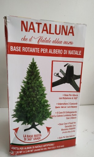 - Obrotowa podstawa nadaje się do sztucznych choinek od 1,20 m do 2,40 m (średnica słupa 22,2 / 31,8 mm), ma główną cechę nie owijania drutu łańcucha świetlnego wokół drzewa, w rzeczywistości nawet ten ostatni obróci się tak, jak obróci wał.