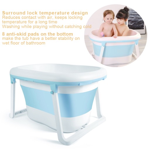 Голубое складное большое переносное ведро с противоскользящим покрытием для 02