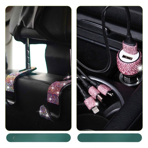 ✅To zestaw dekoracji z efektem bling, które dodadzą wnętrzu Twojego samochodu odrobinę luksusu. Uchwyt nie tylko dekoracyjny, ale także funkcjonalny, pomaga lepiej trzymać telefon podczas jazdy. Haczyk może zawiesić niektóre klucze, parasole i other przedmioty, zapewniając większą wygodę.