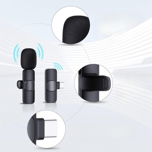 Mikrofon bezprzewodowy składa się z dwóch części, jedna to nadajnik mikrofonu, druga to odbiornik. Może być używany w transmisji na żywo online, nagrywaniu wideo Vlog, wywiadzie programowym, nagrywaniu, nauczaniu wideo i innych okazjach.