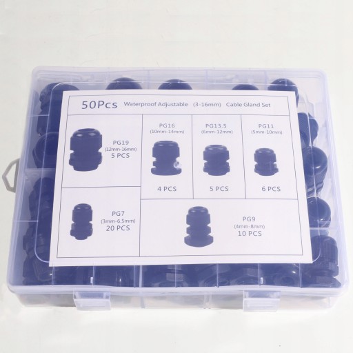 НАБОР XXL КАБЕЛЬНЫХ ВВОДОВ IP68 ВОДОНЕПРОНИЦАЕМЫЙ 3-16 мм ЧЕРНЫЙ Ввод 50 ШТ.