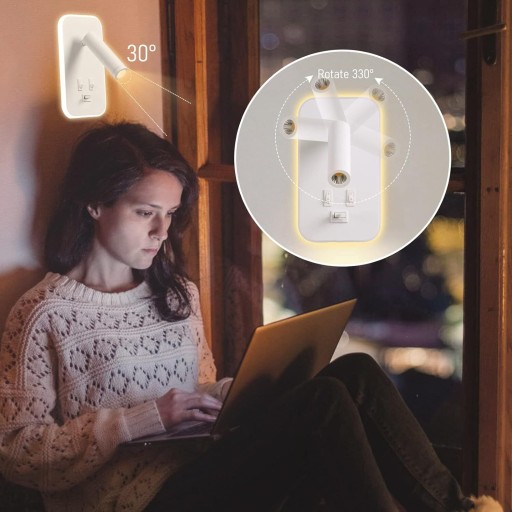 Regulowana ścienna lampa do czytania: Lampa ścienna z przełącznikiem może być obracana o 330 stopni i regulowana w poziomie do 90 stopni, co pozwala na elastyczne dostosowanie kąta do oświetlenia żądanego obszaru.