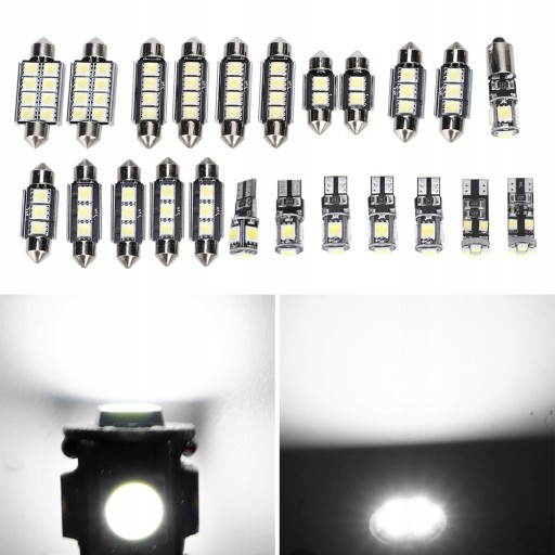 23szt: 5xT10 5050 5SMD, 2xT10 1206 8SMD, 1xBA9S 5050 5SMD, 2x5050 2SMD 31MM, 3x5050 3SMD 36MM, 4x5050 3SMD 39MM, 4x5050 4SMD 42MM, 2x505