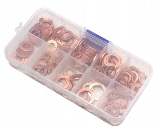 PODKŁADKI MIEDZIANE ZESTAW 200 SZTUK ORGANIZER