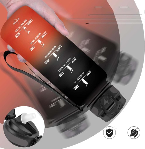 ★ 【Każdy szczegół jest przyjazny dla użytkownika】 Pokrywa na zawiasach otwiera się jednym kliknięciem, co ułatwia picie wody, a zintegrowana słomka pozwala w każdej chwili cieszyć się wodą pitną; butelka na wodę ze znacznikiem czasu zawsze przypomina o wypiciu wystarczającej ilości wody dziennie, aby wypić wystarczającą ilość płynów. Ta sportowa butelka na wodę ma praktyczny i przenośny uchwyt.