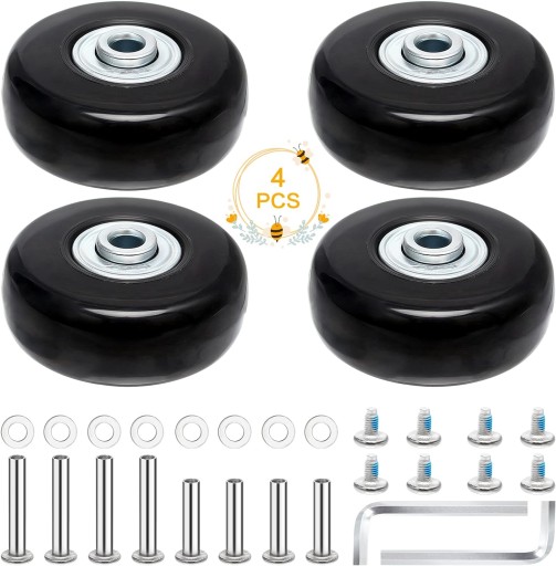 Zestaw 4-wymiennych kółek do walizki bagażowej, całkowicie formowanych, trwałych i cichszych.