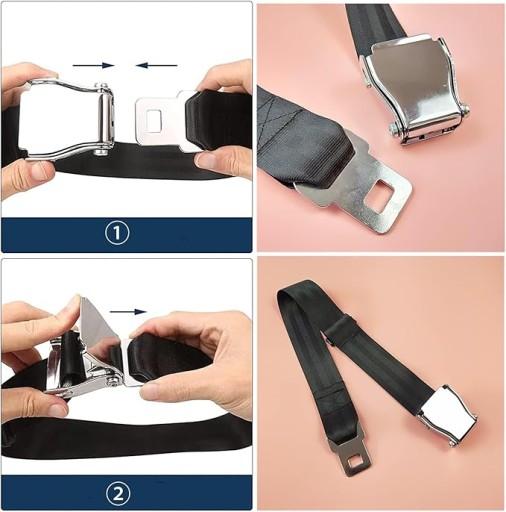 ☑️ Ten produkt jest paskiem przedłużającym do pasów bezpieczeństwa w samolocie. Regulowany standardowy zakres to 25-80 cm. Ma taką samą konstrukcję i funkcję jak pas bezpieczeństwa w samolocie.