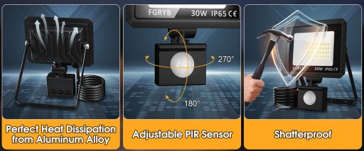 ➡️ Niezrównana wydajność i jakość: Nasz naświetlacz LED o mocy 30W to odpowiednik tradycyjnego naświetlacza o mocy 200W, oferujący imponujący strumień świetlny wynoszący 3000 lumeny. Dzięki efektywności świetlnej na poziomie 100 lumenów na wat, nasz produkt zapewnia znaczące oszczędności energii, przy zachowaniu doskonałej jasności i wydajności.